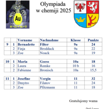 Jährlich finden im Oktober und November in den Fächern Biologie und Chemie Olympiaden statt. Hierbei werden in Klausuren die Jahrgangsbesten der Klassenstufen 6-11 ermittelt. Insgesamt nahmen in diesem Jahr 47 Schüler an der Biologie-Olympiade und 21 Schüler an der Chemie-Olympiade teil.